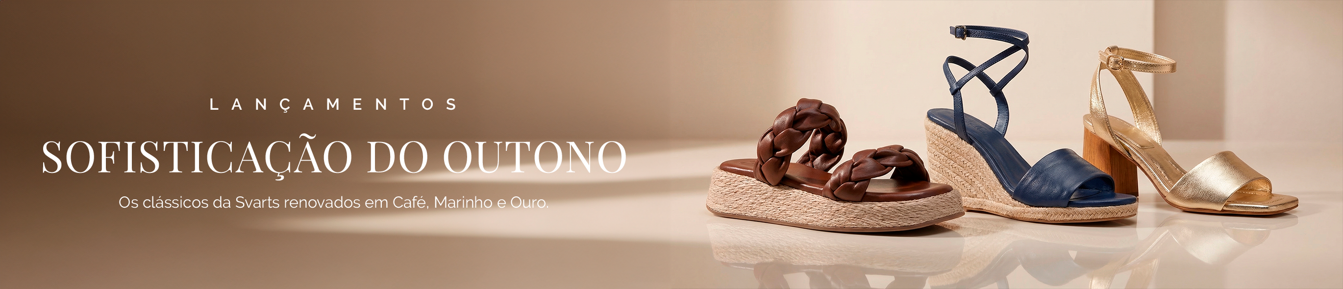Anabela Flatform Couro Ana Ouro Light