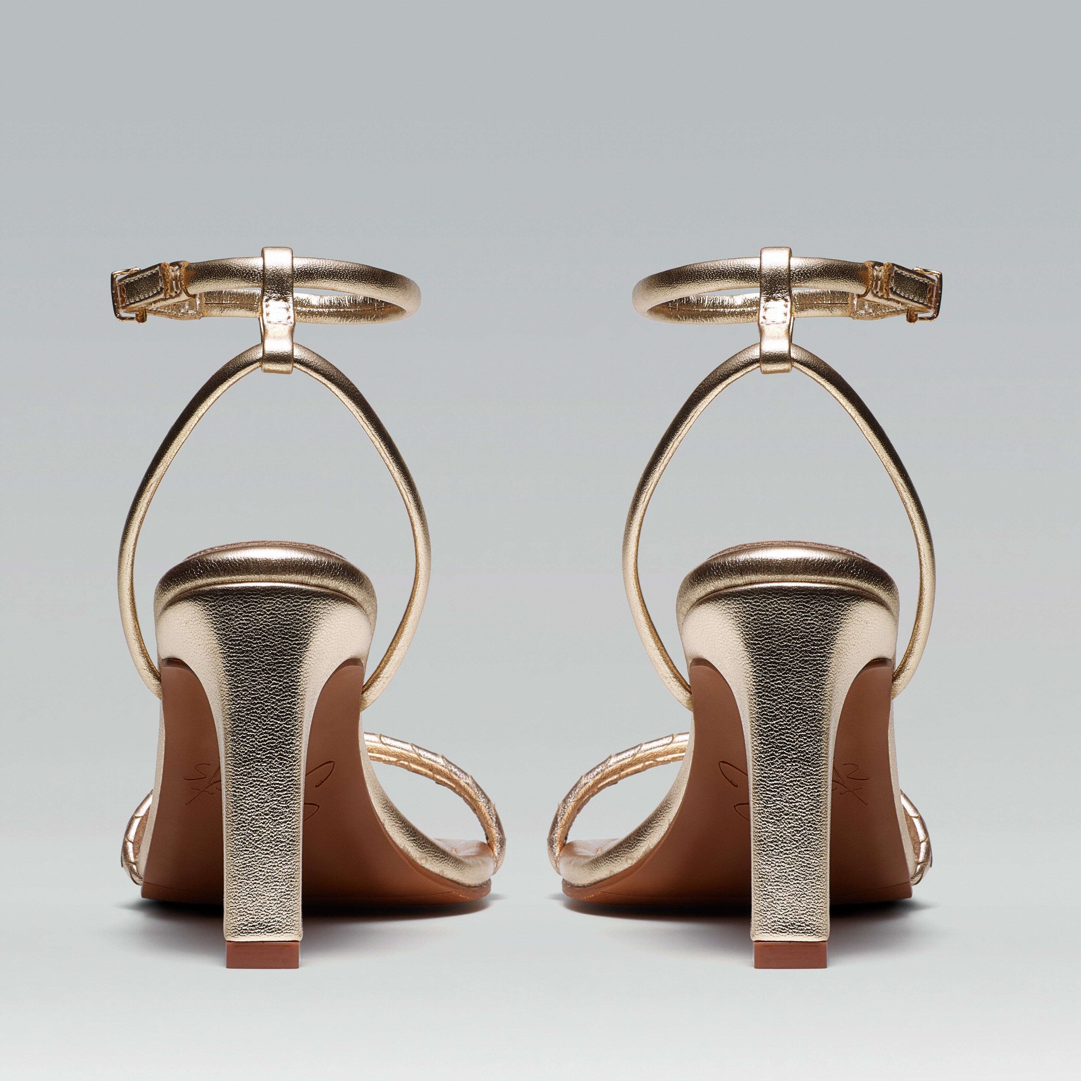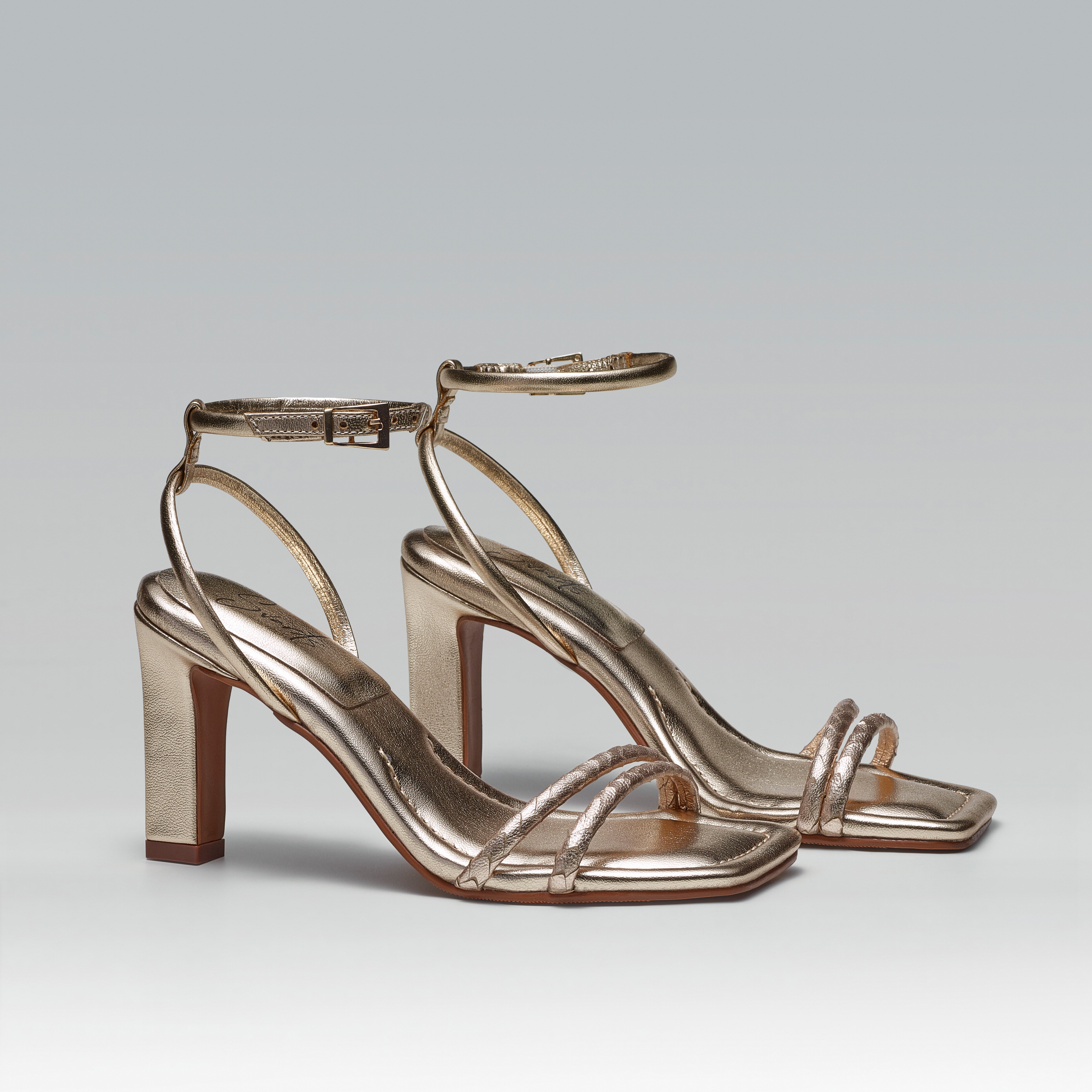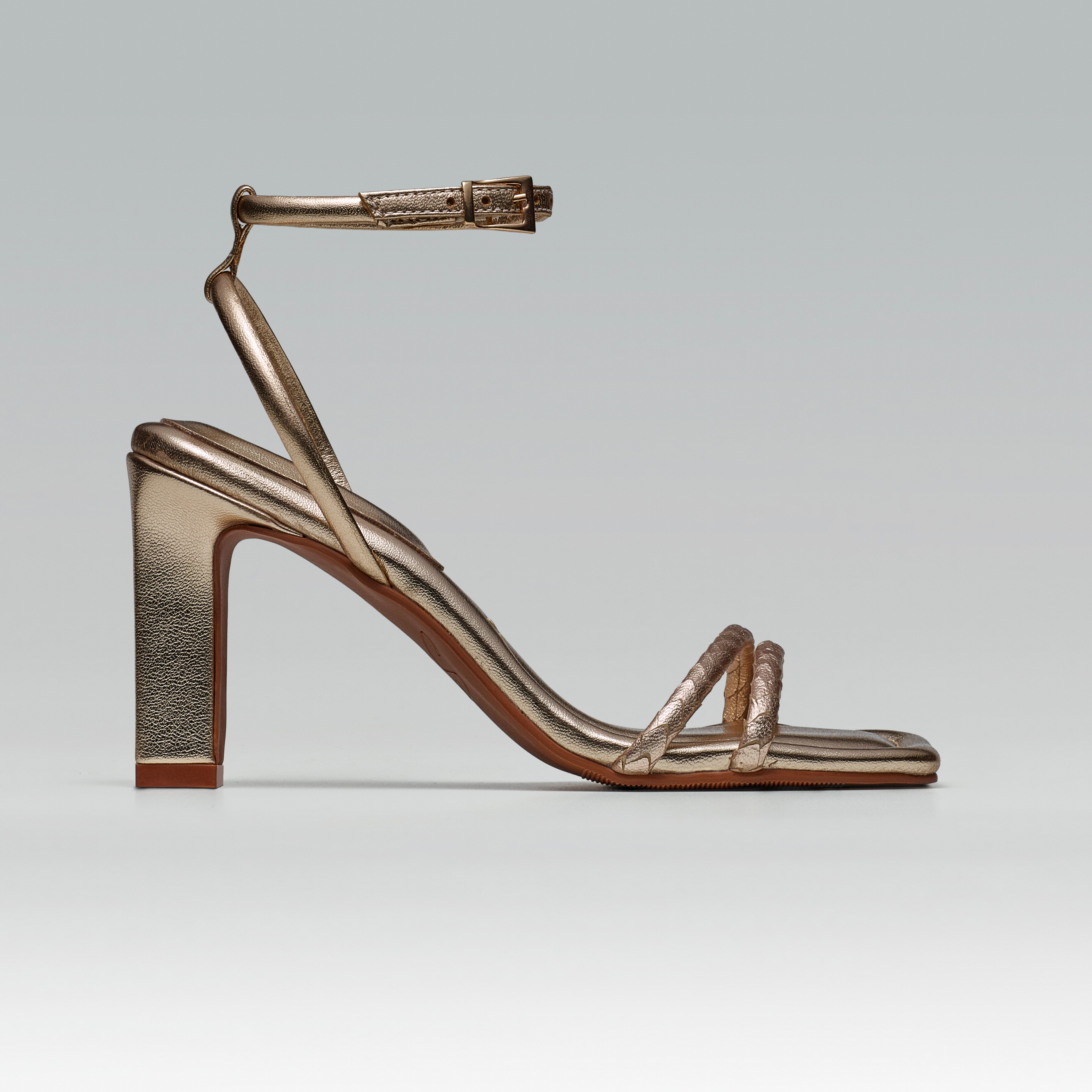 Sandália Couro Salto Alto navalhado Bianca ouro light