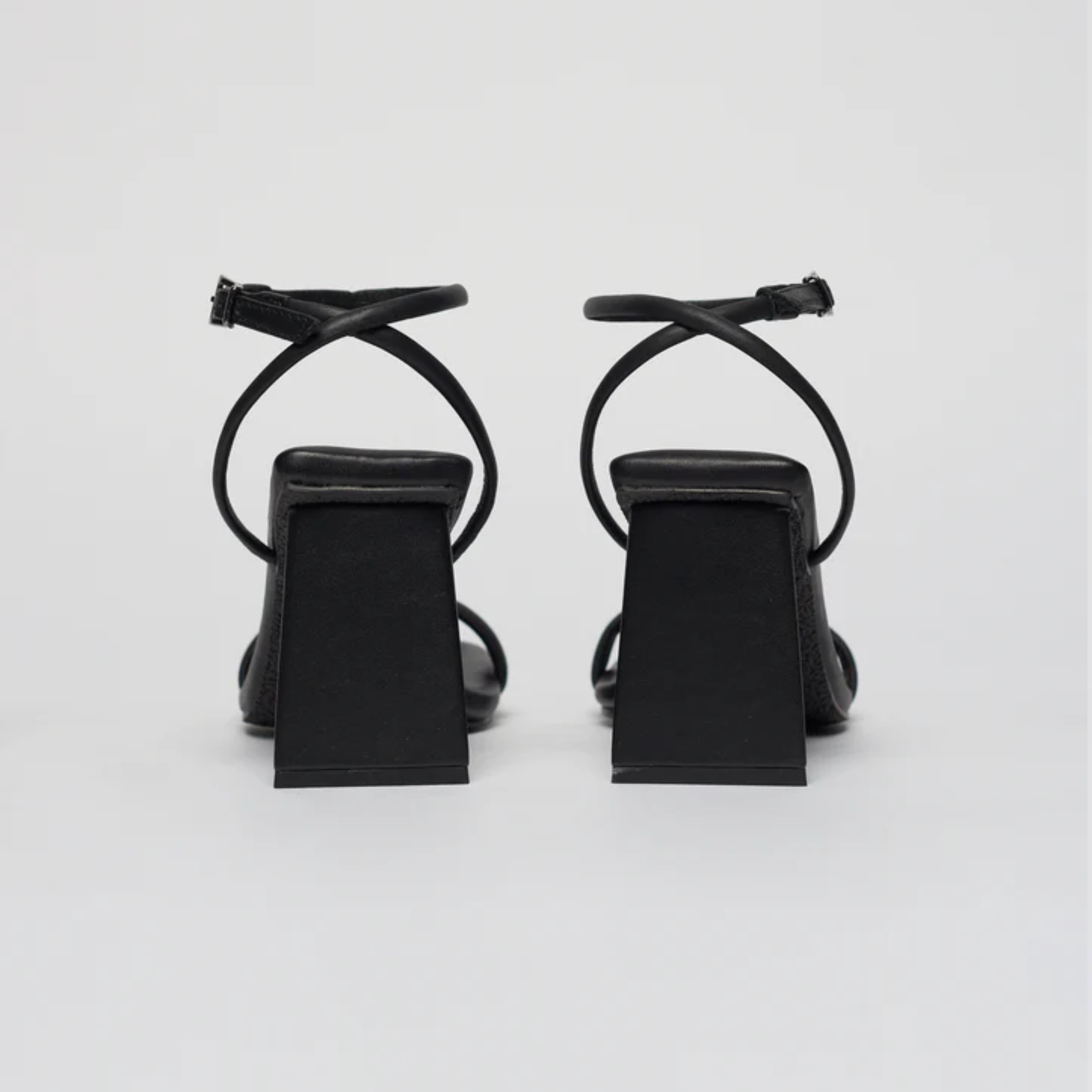 Confeccionada em couro de pelica, ela conta com fechamento por tira com fivela no tornozelo, garantindo ajuste seguro e delicado. O salto bloco oferece estabilidade ao caminhar, enquanto o bico quadrado aberto adiciona um toque moderno ao design.