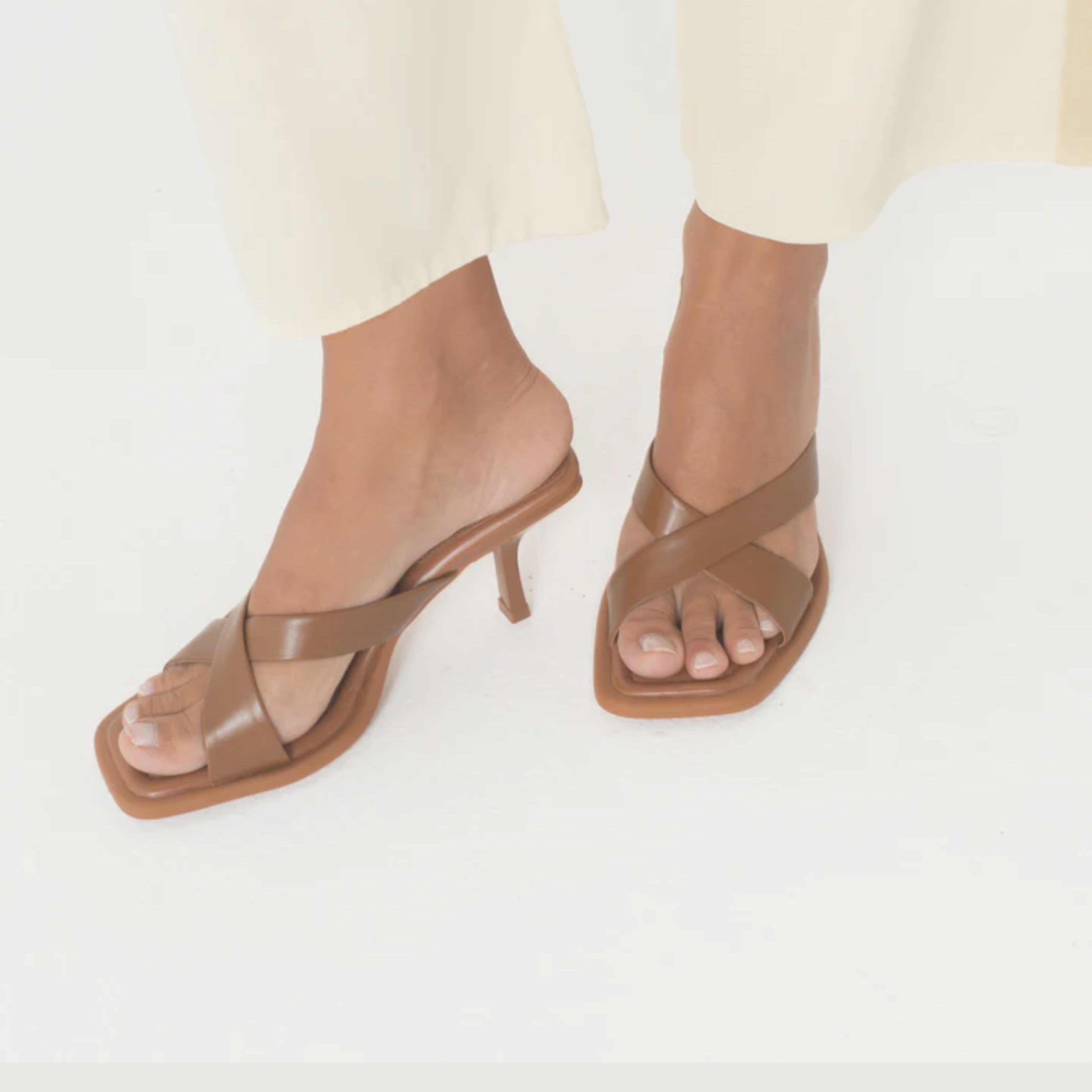 Sandália Couro Salto Médio Mari Maria Tan