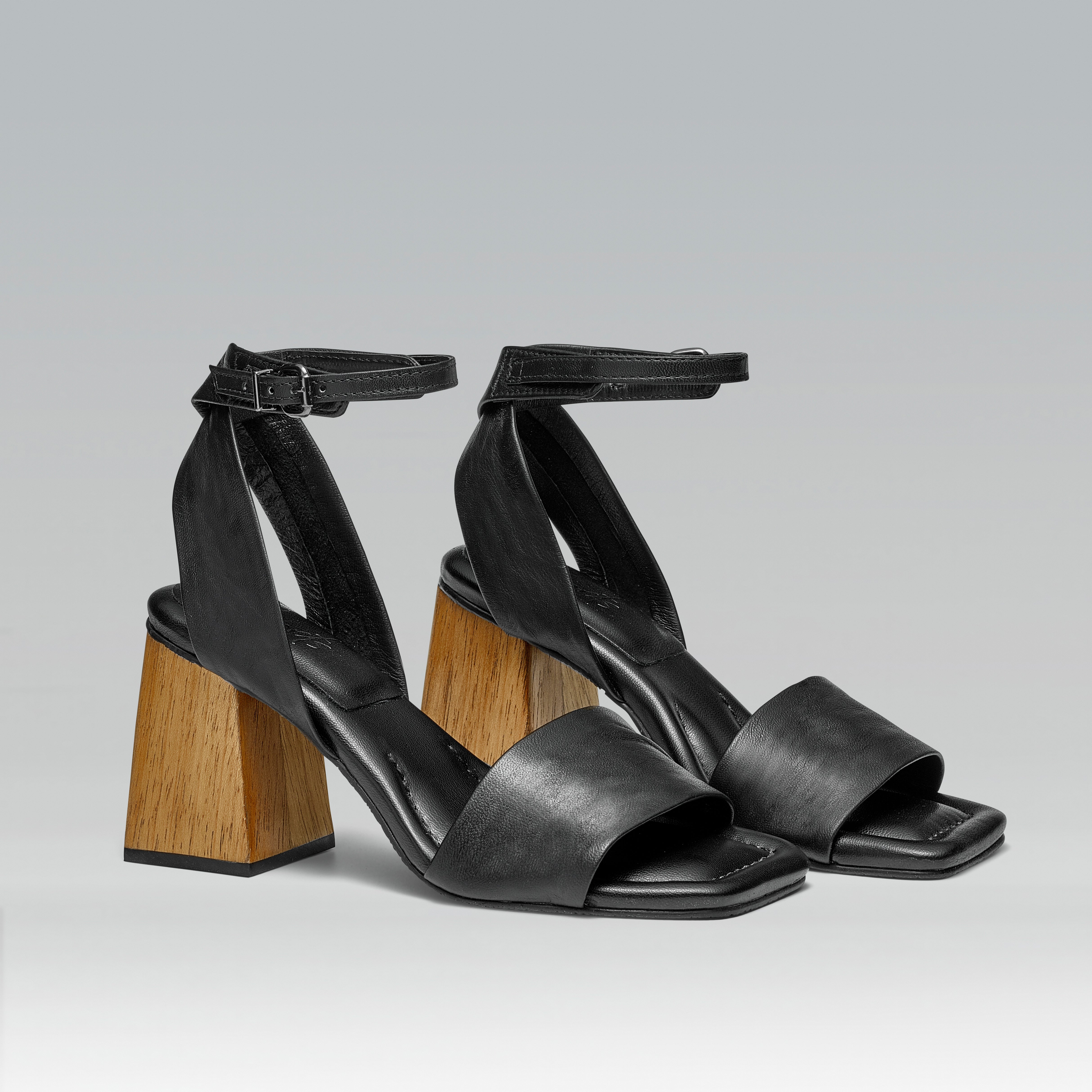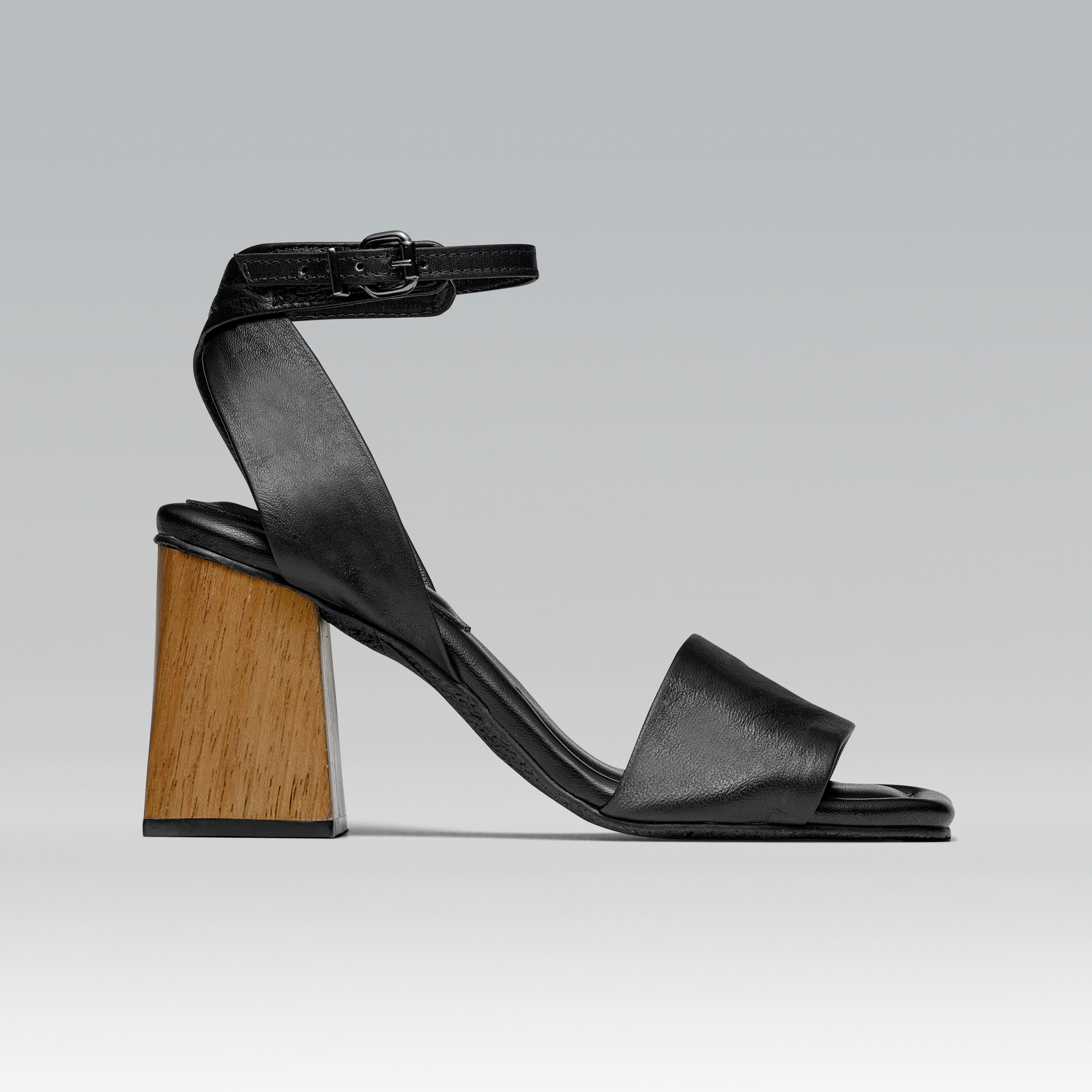 Sandália de Couro Salto Bloco Madeira Helena Preta