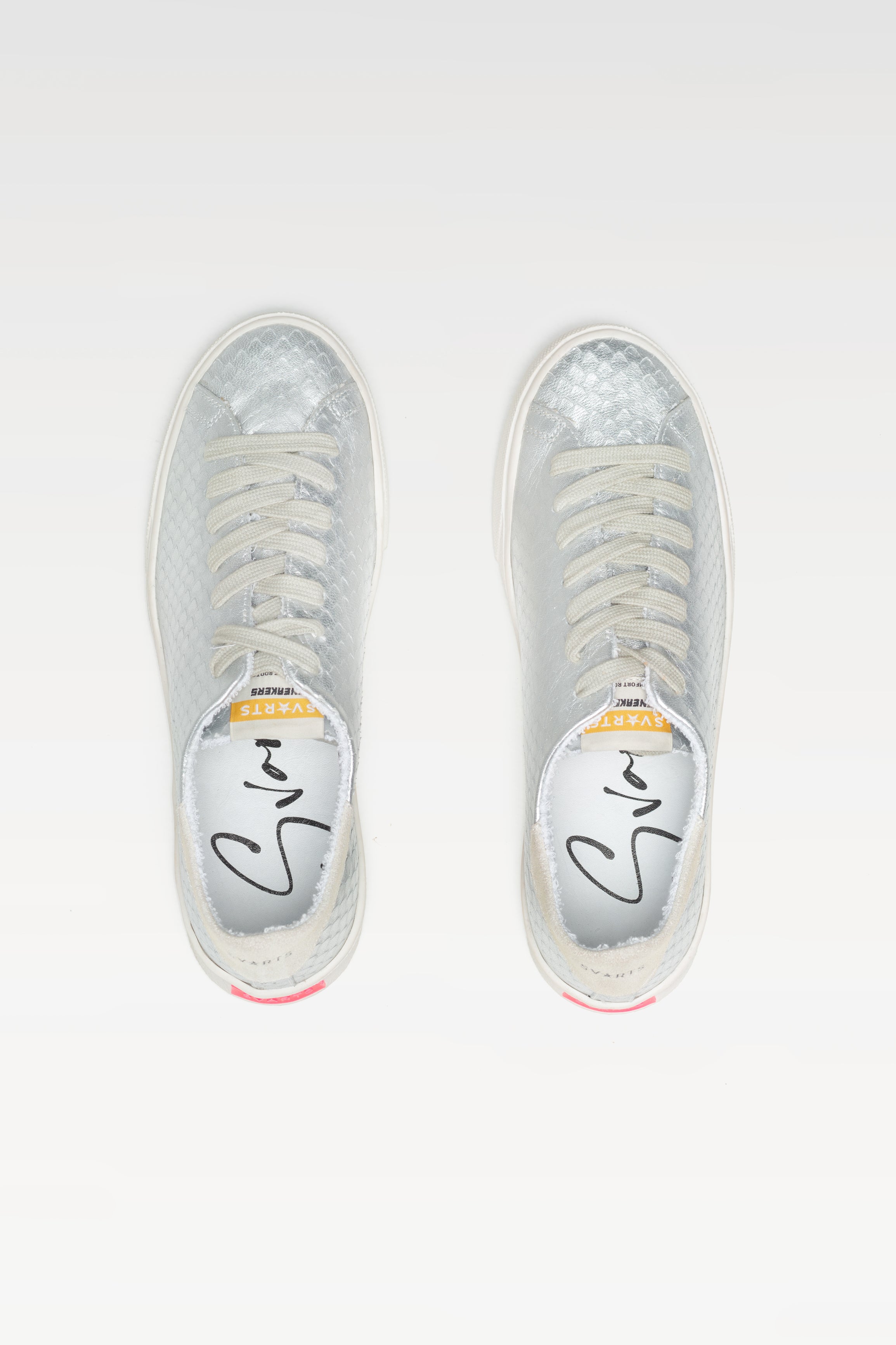 Feito em couro legítimo de pelica de cabra com efeito escamado, o Tênis Adri une textura, leveza e luxo em cada detalhe.