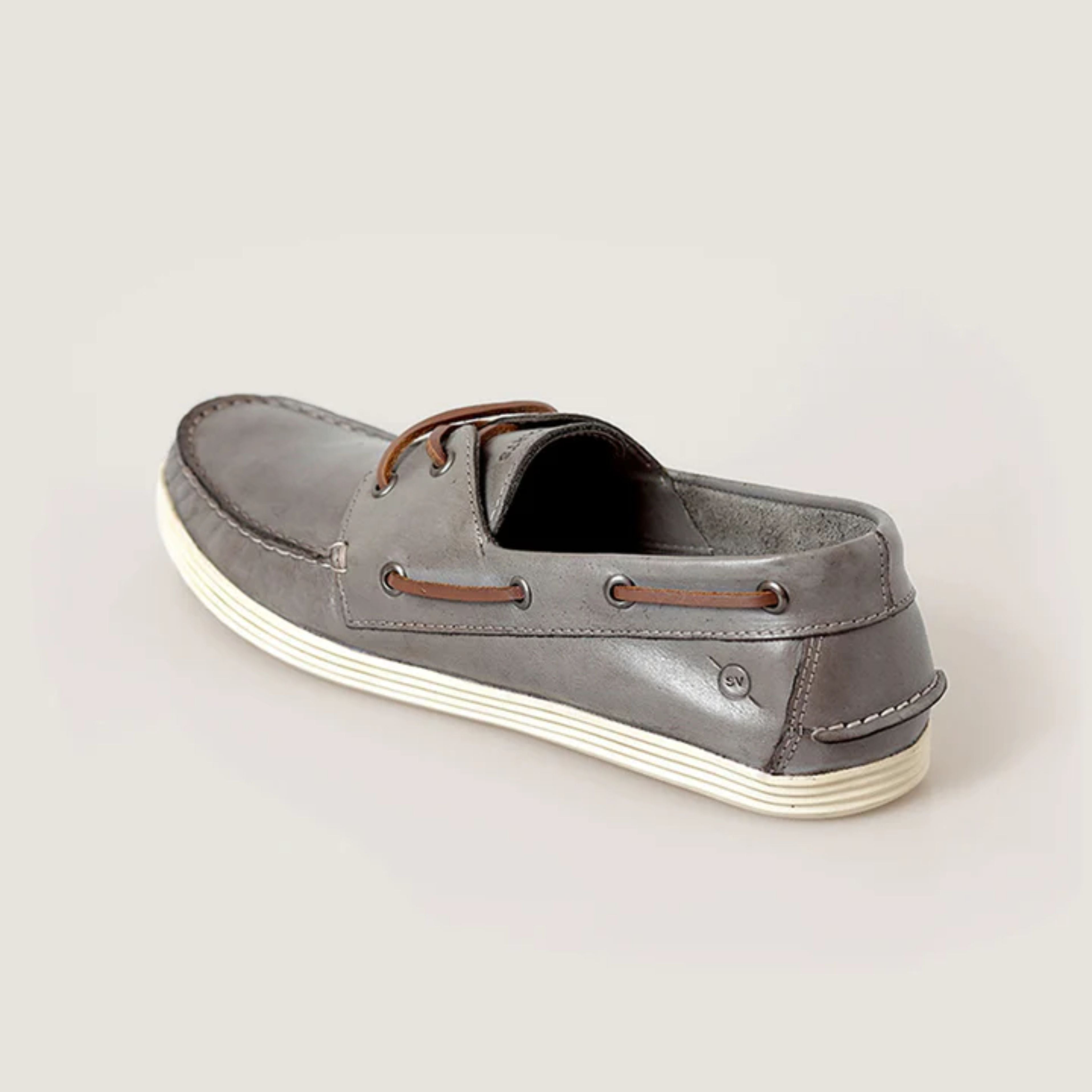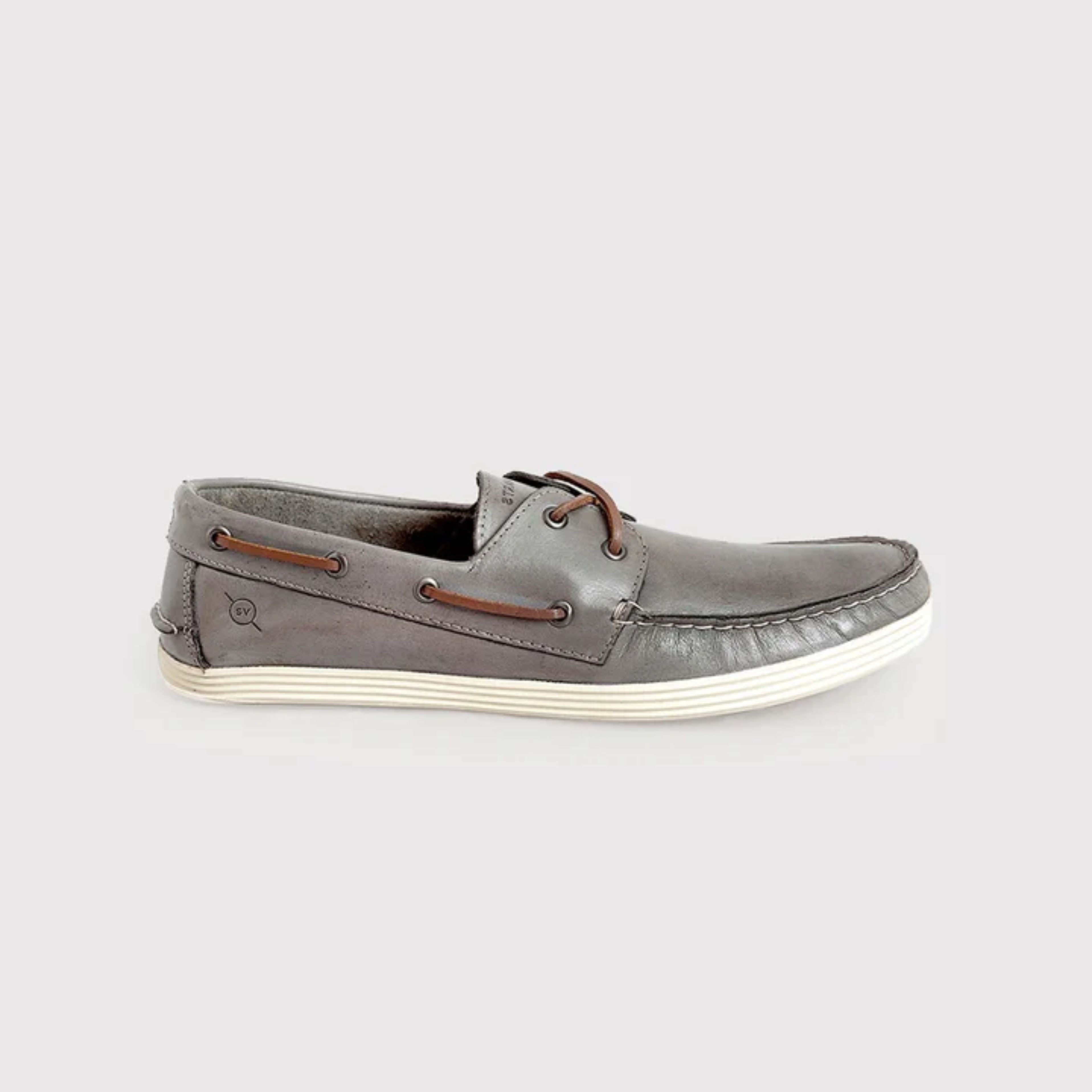 O TOP YACHT CINZA é um top sider de couro com palmilha de espuma forrada de couro. Solado de borracha flexível.